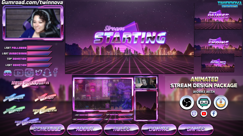 SYNTHWAVE - Animated Twitch Overlay ⭐ Mega Pack ⭐